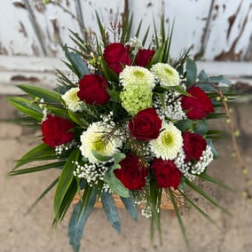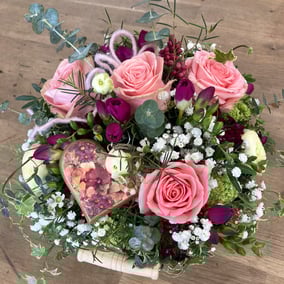 Jeder Strauss/Gesteck ist handgefertigt und mit saisonalen Blumen gestaltet.